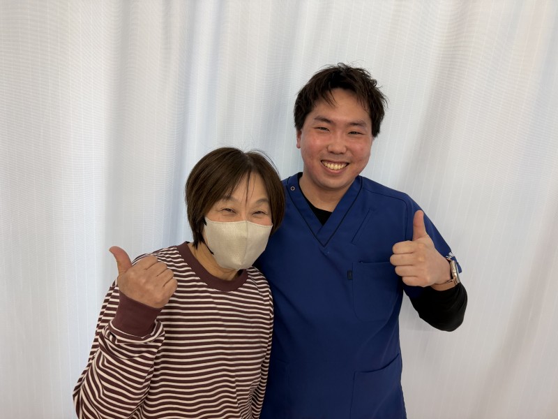 小池約8年整形外科に通院していましたが、水を抜かれたりヒアルロン酸の注射をされたりで通院すればするほど症状が悪化していまい、主人から「そこにいったらダメ!」と言われ、スマホで検索していたら山陽さんのお試しの画面が出てきて色々調べていてここで施術してもらおうと思いました。